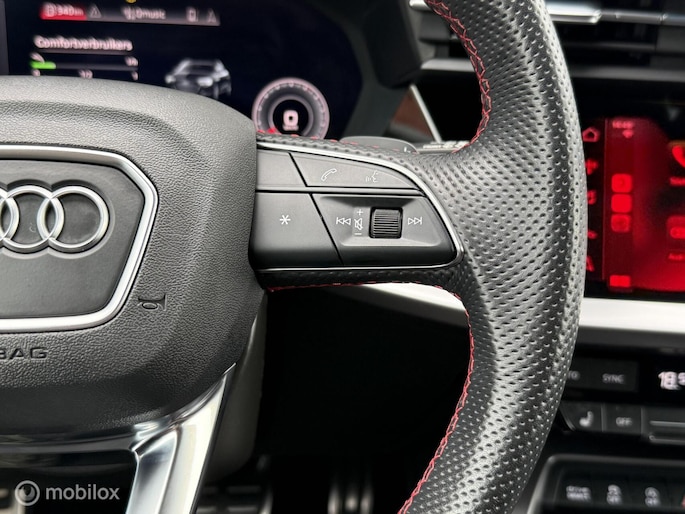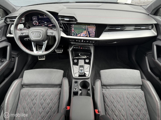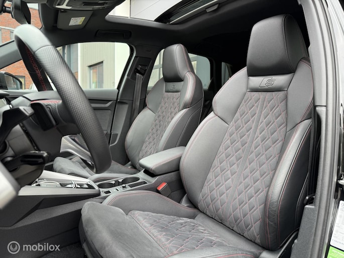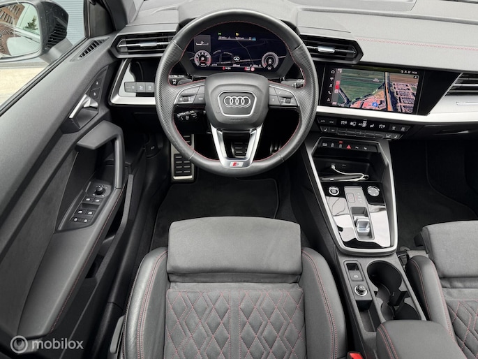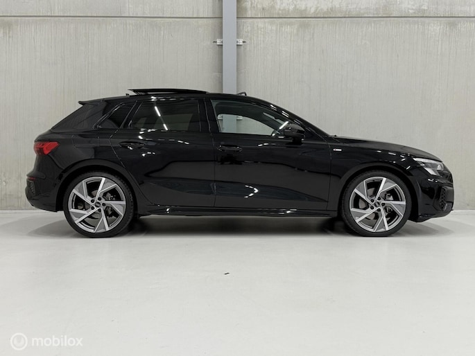 Zoekt u een leuke, betrouwbare, luxe en unieke personenauto!? Dan biedt deze Audi A3 u zoveel leuks voorzien van Mythos Zwart metallic kleurstelling met zwarte buiten element voorzien van 19 inch lichtmetalen velgen. De kleurstelling met zwarte buiten elementen maakt deze Audi A3 Sportback tot een echte blikvanger. Verder is de Audi A3 voorzien van Panorama / schuifkanteldak, airco/climate control, elektrisch ramen voor en achter, parkeersensoren voor en achter en achteruitrijcamera, cruise control met radar functie, full Led verlichting, groot scherm met navigatie en android en apple carplay, stuurwiel bediening, automatische transmissie (S-tronic), S-line Bucket Seats afgewerkt in alcantara met leder interieur met stoelverwarming en nog veel meer! Deze personenauto is voorzien van alle documentatie en heeft twee sleutels.