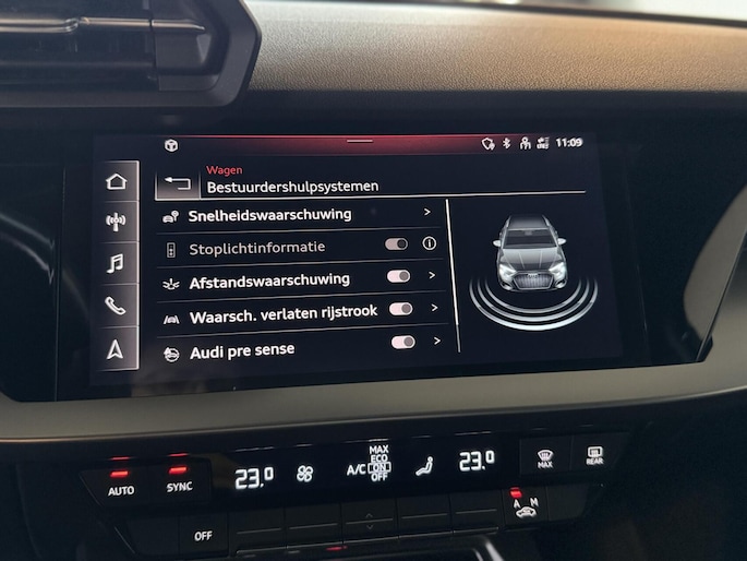 In de Audi A3 Sportback heeft uw veiligheid en die van uw omgeving prioriteit. Onderweg fungeert de verkeersbord-detectie als het ware als uw bijrijder en attendeert u op de verkeersborden langs de weg. Mooi binnen de lijnen van de rijstrook blijven? Het Lane-keeping systeem helpt altijd een handje. Deze Audi A3 Sportback is voorzien van Brake Assist, die extra remkracht geeft bij een noodstop.