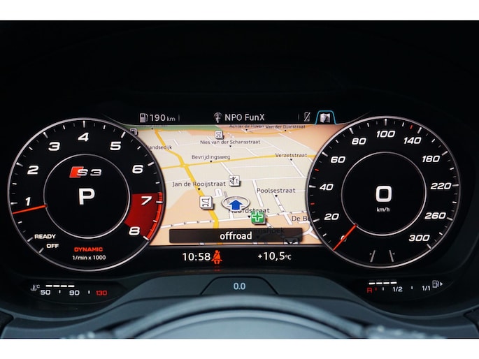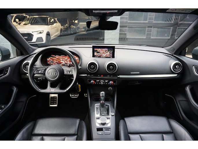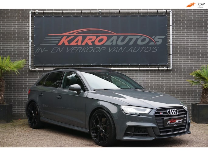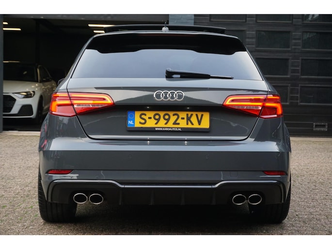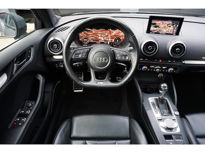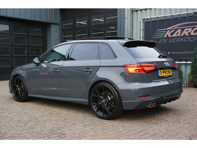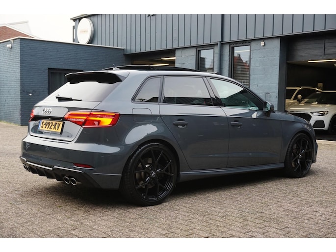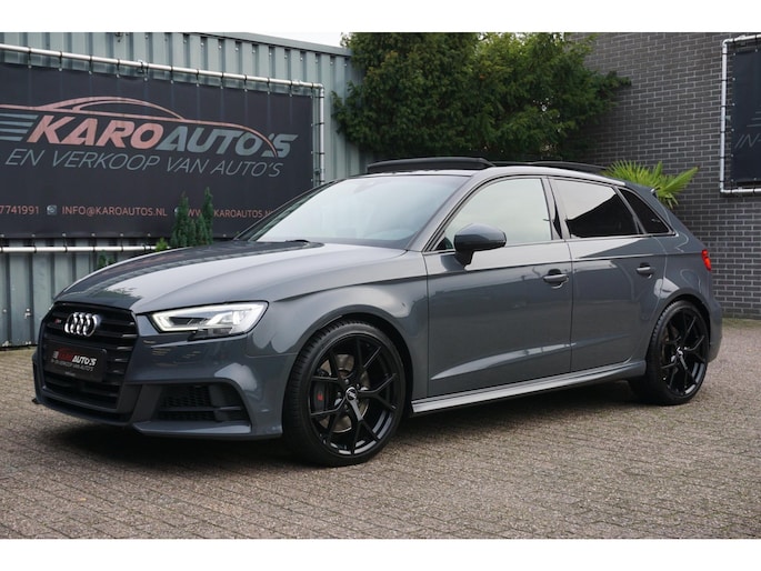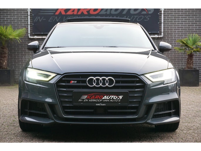 Nette en exclusieve Audi S3 Sportback 2.0 TFSI quattro automaat S-tronic in de kleur Nanogrijs en voorzien van opties zoals; panoramadak, Bang&Olufsen geluidsinstallatie, virtual cockpit, elektrisch verstelbare vol lederen sportbekleding, led matrix koplampen, gevarenherkenning, Audi drive select, adaptieve cruise control (ACC), lane assist, front assist, led dagrijverlichting, led achterlichten, led interieurverlichting, navigatiesysteem, multimediasysteem met usb/aux/bluetooth, dynamische led knipperlichten voor en achter, parkeersensoren voor en achter, start/stopsysteem, privacy glas, climate control, lendensteun, armsteun, elektrische ramen voor en achter, multifunctioneel afgevlakte lederen stuurwiel met flippers, licht- en regensensor, elektrisch bedienbare/verwarmbare spiegels, stoelverwarming, automatisch dimmende binnenspiegel, bluetooth carkit, 19 inch lichtmetalen velgen met zeer goede Hankook zomerbanden, stuurbekrachtiging, centrale deurvergrendeling op afstand, 2 sleutels en nog veel meer.
