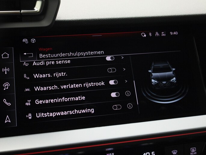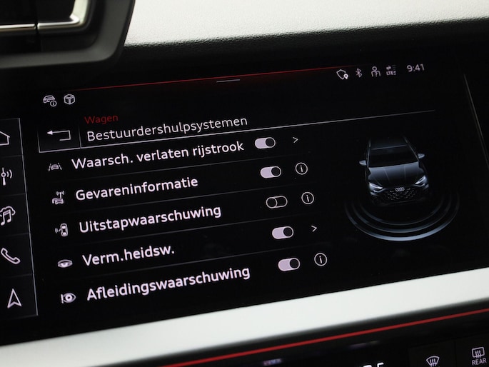 Pragmatisch en veilig als deze auto is, beschikt hij over diverse veiligheidssystemen. Bij de veiligheidssystemen van deze Audi hoort ook de verkeersbord-detectie. Die leest tijdens het rijden als het ware met u mee en attendeert u op de significante verkeersborden langs en boven de weg. Indien u onbedoeld de rijstrook lijkt te verlaten, reageert het Lane-keeping systeem meteen en corrigeert. Ook is deze auto uitgerust met een systeem dat u waarschuwt wanneer u achter het stuur in slaap dreigt te vallen. Ook helpen het dodehoekdetectie, hill hold functie, brake assist en bandenspanningcontrolesysteem, uw rit tot een veilige rit te maken.