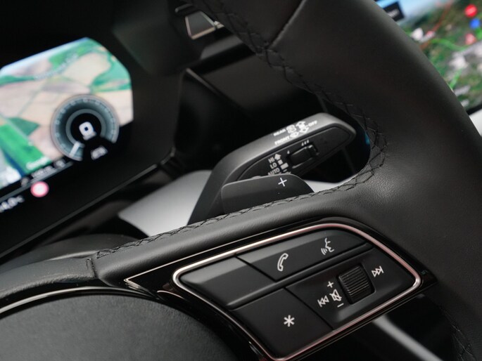 - Driespaaks lederen sportcontourstuur, afgevlakt aan de onderzijde, multifunctioneel plus, met stuurpaddels (2PK)