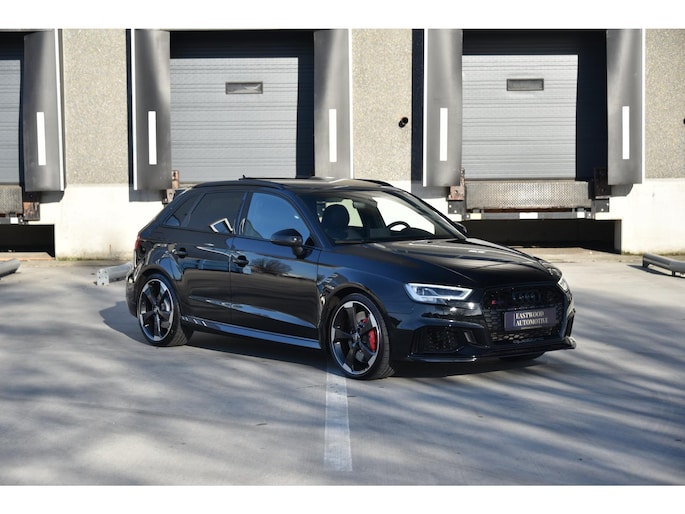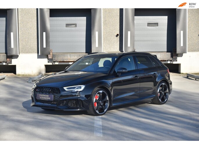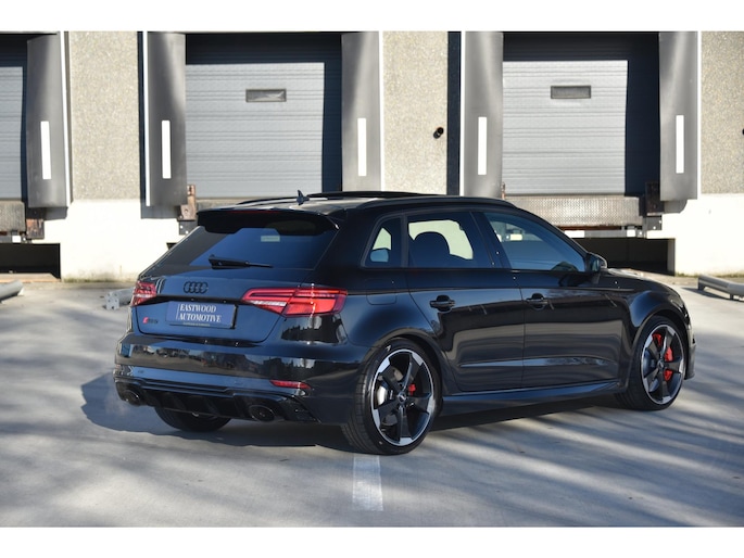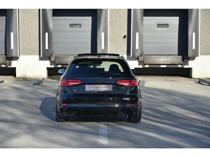 Panoramadak Audi Virtual Cockpit (Digital Cockpit) Audi RS All Black exterieurpakket Voll lederen RS-sportstoelen Stoelverwarming Audi Sport uitlaatsysteem Eerste eigenaar Slechts 65.000 km 3 spaak afgevlakt lederen/alcantara sport stuurwiel Dakrails in zwart