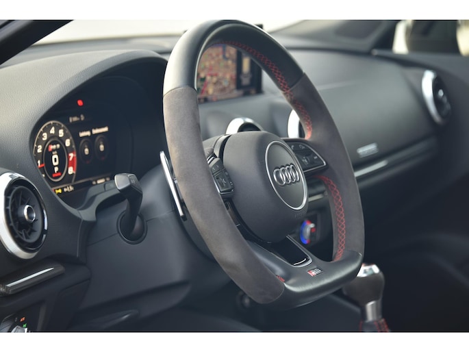 De iconische 2.5 TFSI vijfcilinder in combinatie met de Audi Sport uitlaat zorgt voor een ongeëvenaarde sound en rijbeleving — precies zoals een RS hoort te zijn. Deze RS3 is altijd in handen geweest van een liefhebber, en dat voel je aan alles.