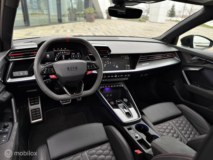 Onze Audi RS3 Sportback 2.5 uit 2025 is een ware icoon in het hot-hatch segment. Met zijn legendarische vijfcilinder, indrukwekkende prestaties en fabrieksgarantie tot 2027 biedt deze RS3 pure sportiviteit mét zekerheid. Uitgevoerd met prachtige opties zoals een panoramadak, Audi RS lederen sportstoelen, Audi Sport velgen en een krachtig Sonos geluidssysteem – en ga zo maar door. Een unieke combinatie van luxe, karakter en prestaties, klaar om elke rit bijzonder te maken.