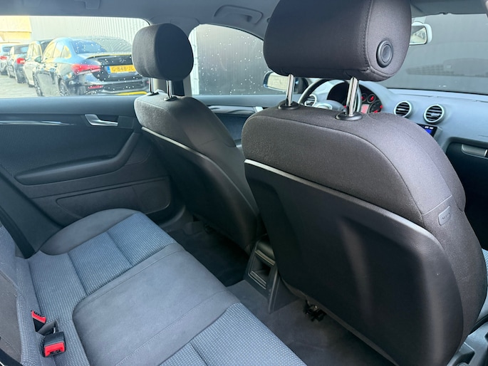 De Audi A3 Sportback combineert comfort met een uitstekende wegligging en dynamische rijkwaliteiten. De aandrijving van deze Audi wordt verzorgd door een viercilinder motor en een handgeschakelde zesversnellingsbak. De sportstoelen geven het interieur van deze A3 Sportback een super strakke en sportieve uitstraling. Verder is de Audi uitgerust met: 17 inch lichtmetalen velgen, sportonderstel, warmtewerend glas, in delen neerklapbare achterbank en snelheidsafhankelijke stuurbekrachtiging.