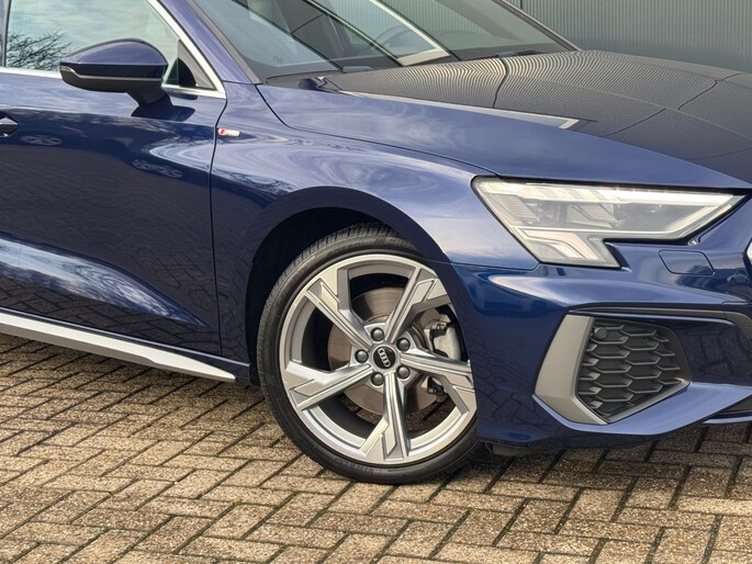 Alle technologie in de Audi A3 Sportback is er op gericht om uw rit veilig en gemakkelijk te laten verlopen. Het S-Line styling pakket maakt direct duidelijk waar deze Audi voor staat: onversneden sportiviteit en rijdynamiek. De aandrijving van deze Audi wordt verzorgd door een driecilinder motor en een automatische transmissie. Pittig rijden wordt nog comfortabeler dankzij de fraaie sportstoelen. Tot de uitrusting van deze Audi behoren ook 18 inch lichtmetalen velgen, sportonderstel, adaptieve verlichting, dakspoiler, in delen neerklapbare achterbank en LED-achterlichten.