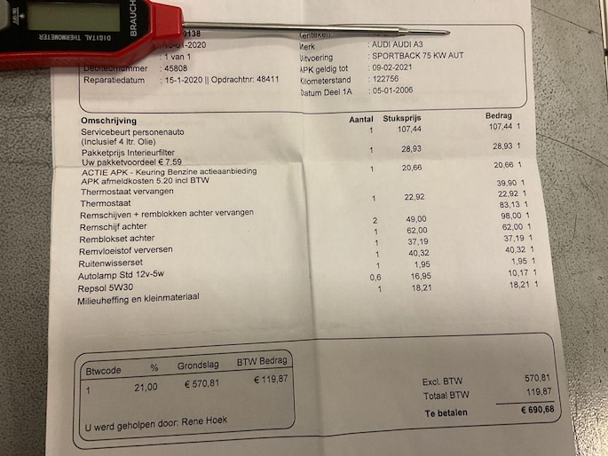 Kilometerstand gecontroleerd