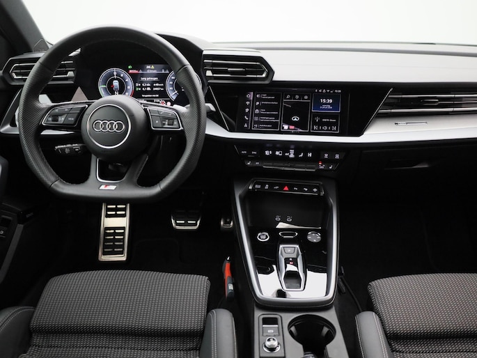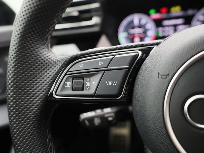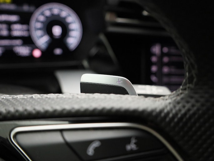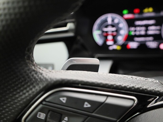 - Driespaaks lederen sportcontourstuur, afgevlakt aan de onderzijde, multifunctioneel plus, met stuurpaddels (2PK)