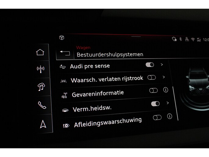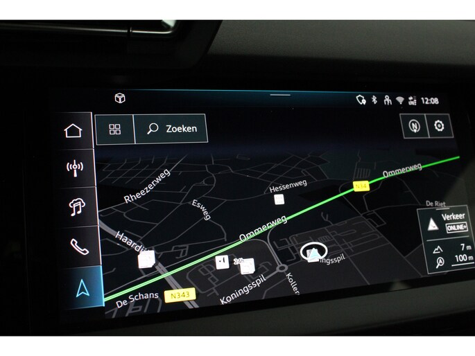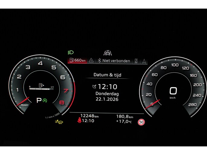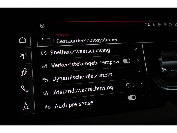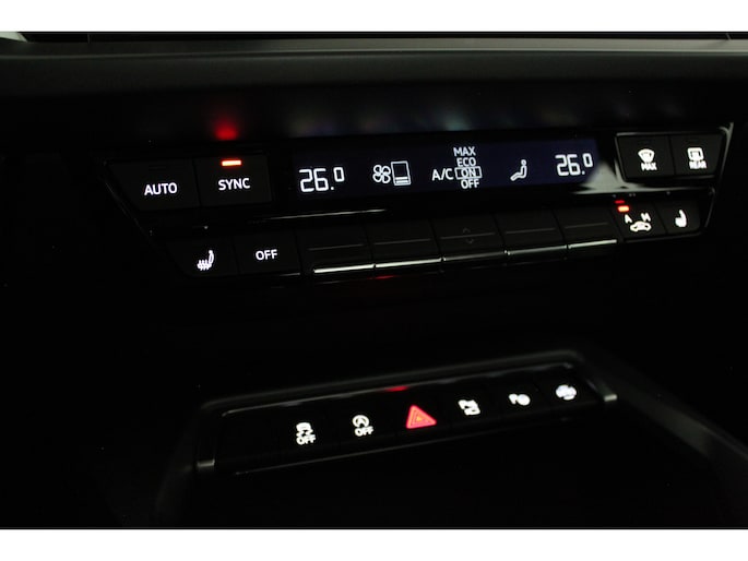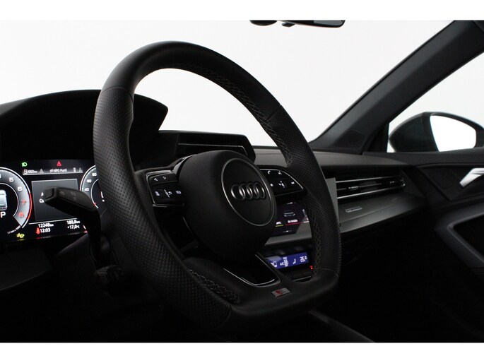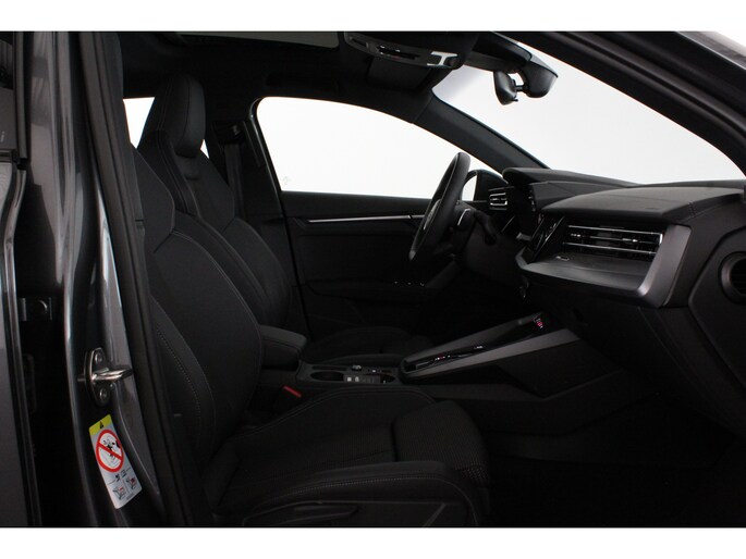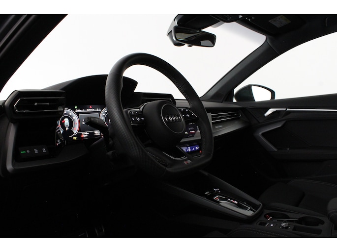 Het interieur ademt sportiviteit en luxe. U neemt plaats in de sportstoelen met S line logo, bekleed met een stijlvolle stof/kunstlederen combinatie en voorzien van stoelverwarming. De donkere hemelbekleding, aluminium interieuraccenten en het afgevlakte lederen sportstuur met schakelpeddels versterken het sportieve karakter. Dankzij de Audi Virtual Cockpit Plus en het navigatiesysteem full map heeft u altijd alle informatie overzichtelijk in beeld, volledig naar wens in te stellen.