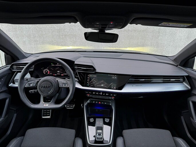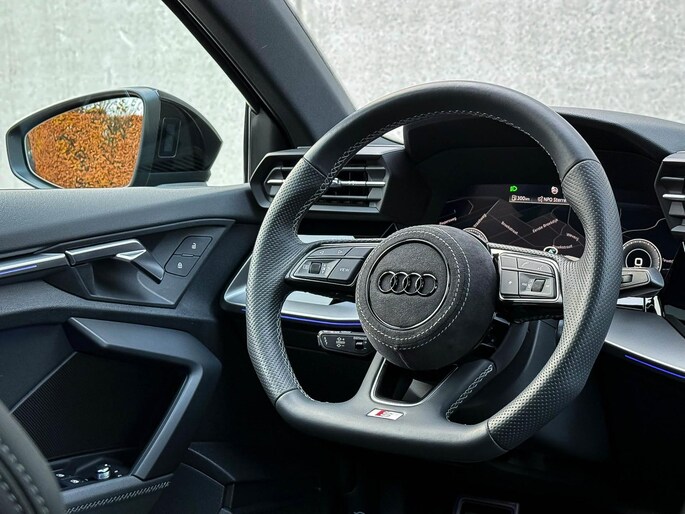 Uitgebreide boordcomputer|Apple CarPlay / Android Auto|Voice control|Rear View / Achteruitrijcamera|Parkeersensoren voor- & achterzijde|Parkassist / Automatisch inparkeersysteem|Keyless Entry & Keyless GO|17 inch S-line velgen|*Optioneel: De getoonde 19 inch OEM Audi Sport Performance velgenset|Zwarte hemelbekleding|Hoogglans zwarte pianolak interieurafwerking|Climate Control dual-zone|Aluminium interieurafwerking|Geperforeerd lederen multifunctioneel 3-spaaks afgevlakt S-line Sportstuurwiel|Audi Exclusive Alcantara airbag incl. witte stiksels|F1 schakelflippers|Warmtewerende voorruit|Ambiance sfeerverlichting Premium|Audi Premium Sound incl. Subwoofer|DAB+ / Digital Audio Broadcasting|Elektrische ramen voor- & achterzijde|Spiegelpakket - Elektrisch verwb.-/verstelb. + inklapbare buitenspiegels|Automatisch dimmende binnenspiegel & buitenspiegels|Dashboard afwerking incl. witte stiksels|Aluminium interieurlijsten|Hoogglans zwarte pianolak interieurafwerking|RVS S-line instaplijsten incl. LED verlichting|RVS Sportpedalen|Black Pack / Zwart optiekpakket|Hoogglans zwarte grille|Hoogglans zwarte raamomlijsting|Hoogglans zwarte sideskirts|Hoogglans zwarte buitenspiegels|Privacy Glass|