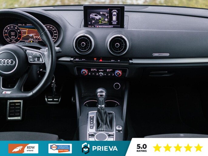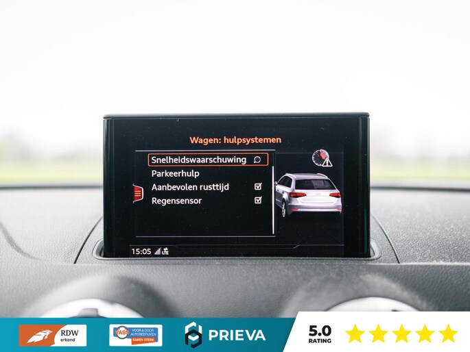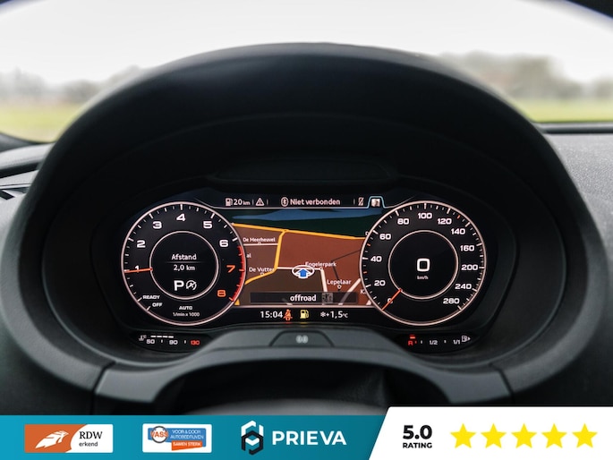 Technologisch is deze A3 volledig bij de tijd. Het digitale dashboard geeft alle rij- en navigatie-informatie overzichtelijk weer, terwijl het navigatiesysteem met harde schijf, DAB-radio en WIFI-hotspot zorgen voor connectiviteit en gebruiksgemak. Parkeren gaat eenvoudig met de parkeersensoren, en met cruise control rijdt u ontspannen lange afstanden.
