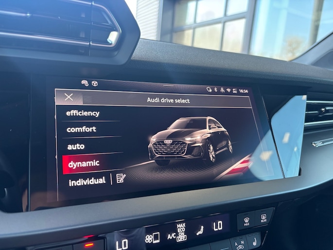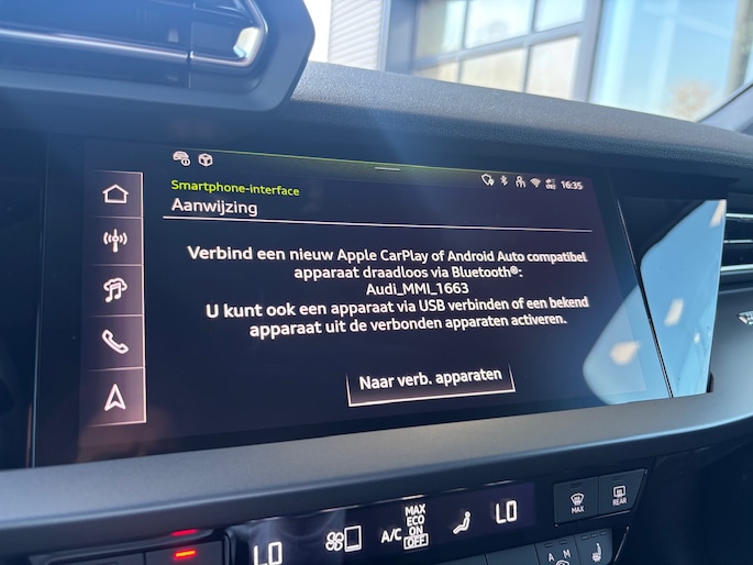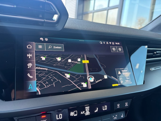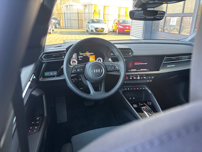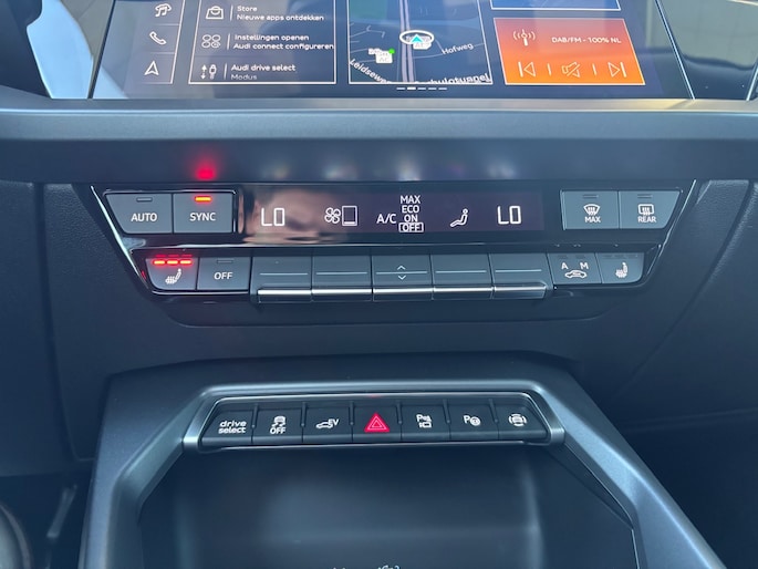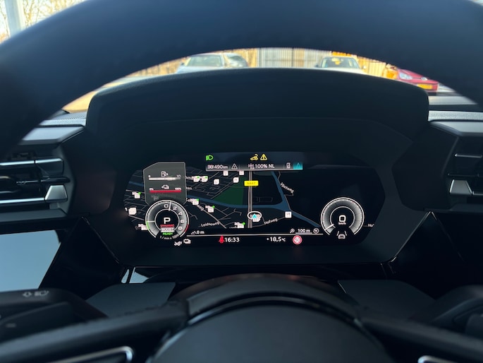 Kom maar, kom maar, kom maar... ho! Prettig hoor, zo'n achteruitrijcamera. Met adaptive cruise control houdt de auto zelfstandig afstand tot jouw voorligger. Een veiligheidsverhogende optie waarmee je comfortabel onderweg bent. Had je de auto nou wel afgesloten? Met Connected Services check je het overal en altijd. Het full map navigatiesysteem en het audio-installatiesysteem (met DAB-ontvangst!) bedien je met knoppen op het stuur of met gesproken commando's. Geen onnodige spaghetti van oplaadsnoertjes voor de smartphone: deze Audi A3 Sportback heeft een draadloze oplaadmogelijkheid voor telefoons. Ook WIFI-hotspot, automatische airconditioning, schakelpaddles aan het stuur, regensensor en centrale deurvergrendeling met afstandsbediening zijn aan boord.