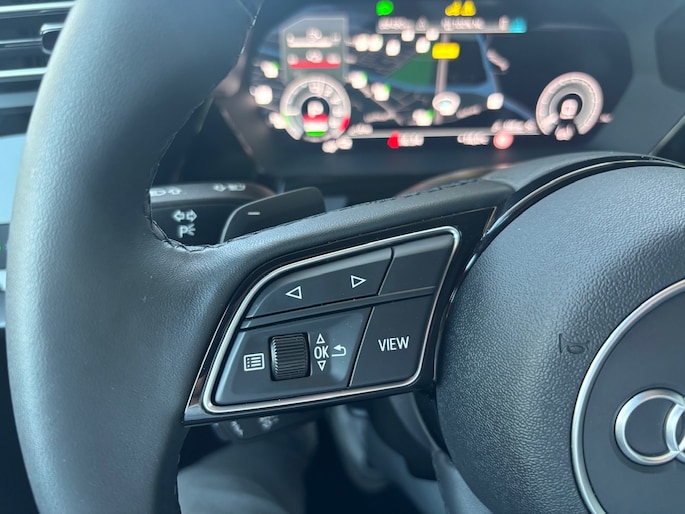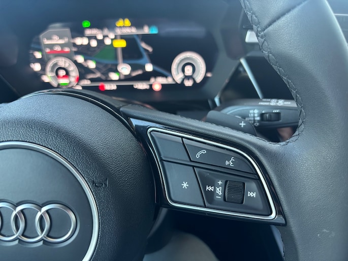Zodra je naar de 'R' schakelt, gaat de achteruitrijcamera in werking en heb je een perfect zicht op alles wat zich achter de auto afspeelt. Adaptive cruise control houdt de ingestelde snelheid vast en houdt afstand tot het voertuig voor je. Een veiligheidsverhogende optie is de ingebouwde spraakbediening. Terwijl jij jouw ogen op de weg houdt, bedien je de auto met je stem. Als je 'm vraagt 'hoe gaat het?' geeft deze auto zelf het antwoord. Via de app op je smartphone. Je checkt de meters waar je maar wilt, of activeert diverse functies alvast. Met het full map navigatiesysteem kies jij de snelste route naar jouw eindbestemming. Deze Audi is voorzien van WIFI-hotspot, automatische airconditioning, schakelpaddles aan het stuur, draadloos opladen, digitale radio en regensensor.