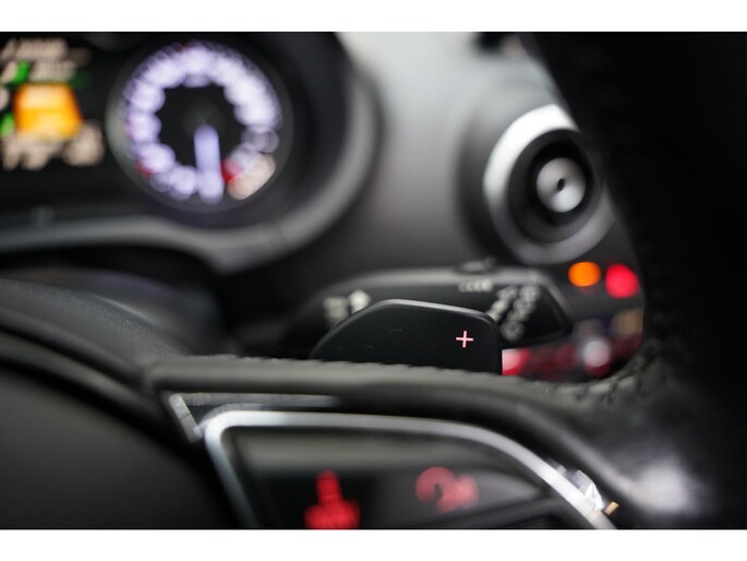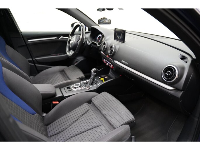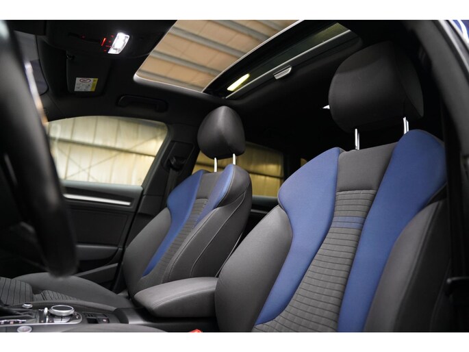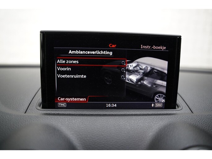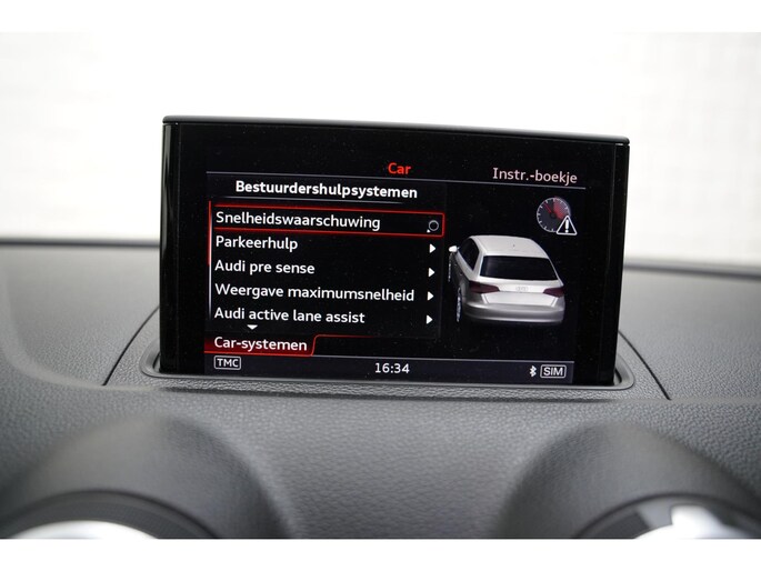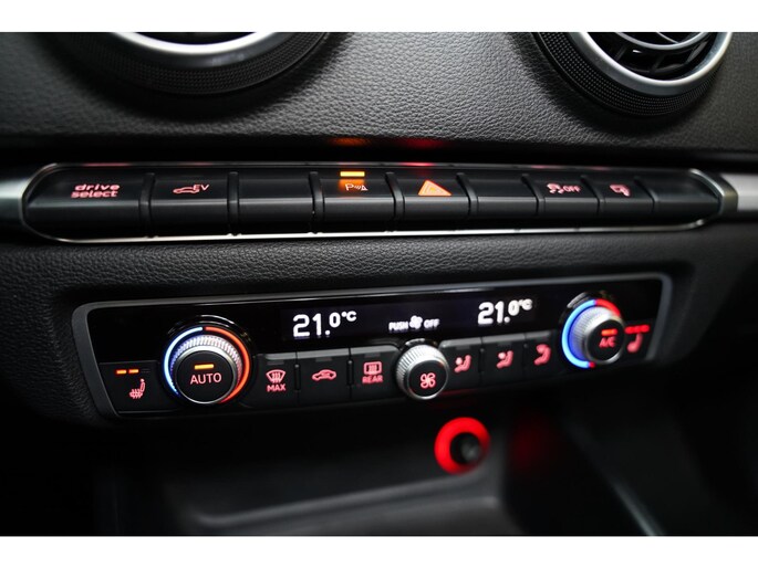 Adaptive cruise control houdt de ingestelde snelheid vast en houdt afstand tot het voertuig voor u. Een optie die de veiligheid verhoogt, is de bediening vanaf het stuur van het audiosysteem en het origineel navigatiesysteem. Als u wilt kunt u beiden zelfs met uw stem bedienen. Het comfort wordt verhoogd door de aanwezige automatische airconditioning. Kom-maar-kom-maar...ho! Zo eenvoudig is het voordeel van parkeersensoren. En zo behulpzaam! Klinkt dit bekend? Met een volle boodschappentas bij uw auto aankomen en dan onderin op zoek moeten naar de sleutel. Hoeft niet bij deze Audi A3 Sportback dankzij de keyless entry. En dan is deze auto ook nog eens voorzien van schakel flippers aan het stuur, buitentemperatuurmeter, automatisch dimmende buitenspiegels, isofix-aansluiting, centrale deurvergrendeling met afstandsbediening en bestuurders-informatie-systeem.