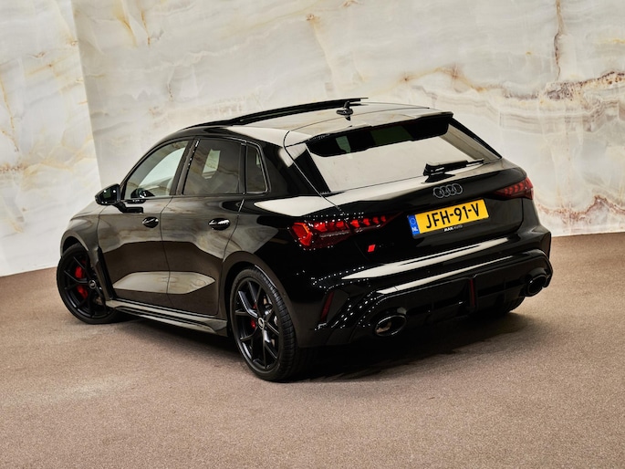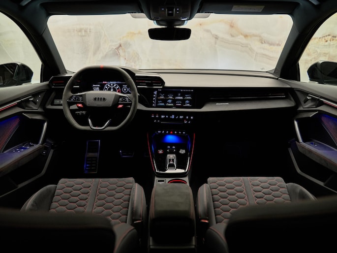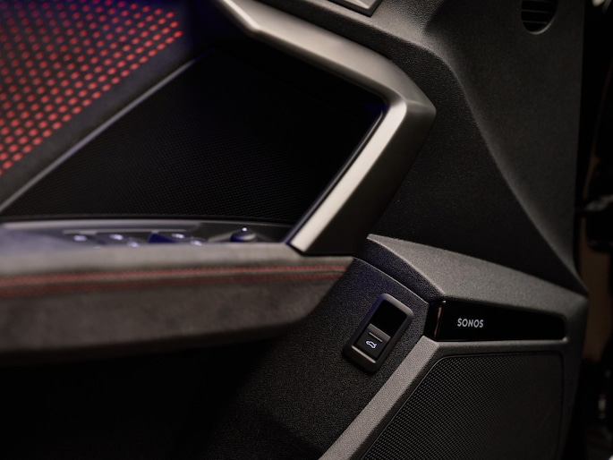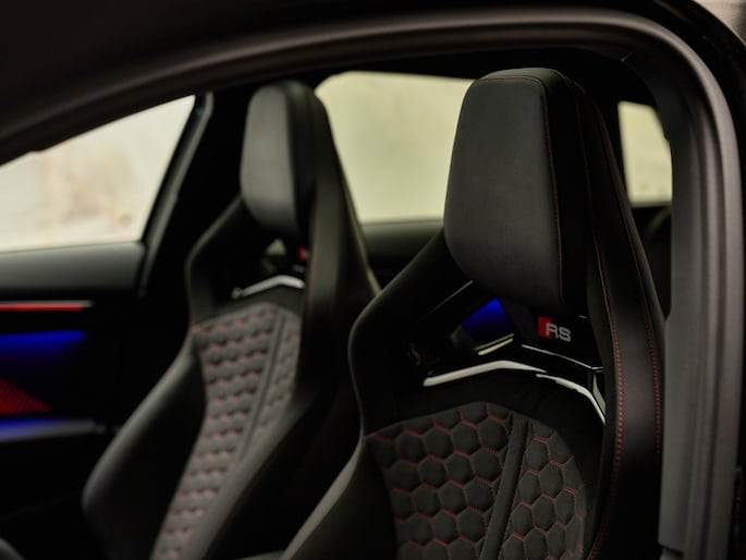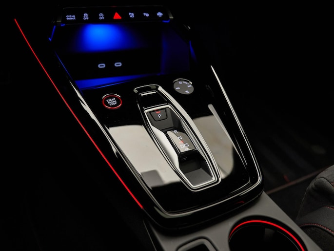 Het uitgesproken karakter van de Audi RS3 Sportback wordt versterkt door zijn sportieve en hoogwaardige afwerking. Het RS Designpakket Rood Plus (PEJ) geeft het interieur een extra dynamische uitstraling met contrasterende accenten. De Sportstoelen vóór (Q4P) in combinatie met Lederen bekleding (N1Y) bieden uitstekende steun en comfort, zelfs bij sportief rijden. Aan de buitenzijde zorgen Matrix-ledkoplampen, ledachterlichten en koplampsproeiers (PXC) voor een krachtige lichtsignatuur en optimale zichtbaarheid. De 19 inch lichtmetalen velgen (52W) en RS-Instaplijsten vóór met aluminium segmenten (VT2) benadrukken het exclusieve RS-karakter. Deze combinatie van luxe materialen, sportieve details en geavanceerde verlichtingstechnologie maakt deze RS3 tot een echte blikvanger