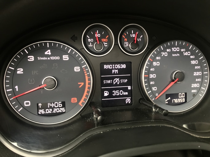 Volautomatische airconditioning verwarmt of koelt het interieur met een druk op de knop. Inparkeren en uitparkeren kost geen enkele moeite dankzij de parkeersensoren. Zuinig zoeven, dat kan deze auto dankzij de aanwezige cruise control. De uitrusting van deze Audi is met navigatiesysteem, lederen stuur, centrale deurvergrendeling met afstandsbediening, boordcomputer en lederen versnellingspook behoorlijk compleet.