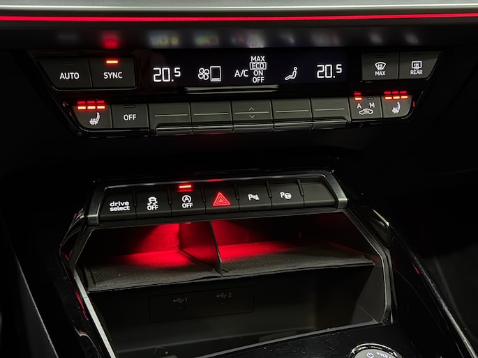 De Audi A3 Sportback combineert comfort met een uitstekende wegligging en dynamische rijkwaliteiten. Met de S-Line styling laat dit model zich van zijn meest dynamische kant zien. De aandrijving van deze Audi wordt verzorgd door een vijfcilinder motor en een automatische transmissie. Op koude en donkere dagen zijn de verwarmbare voorstoelen een uitkomst. De sportstoelen zorgen voor een strak uiterlijk én een uitstekende zitsteun. Voor extra lichtinval en een frisse luchtstroom zorgt het elektrisch bediende panoramadak. Een handige voorziening op deze auto is de elektrische achterklep die u op afstand kunt openen. De koplampen met matrix LED-verlichting geven daglichtkwaliteit zonder tegenliggers te hinderen. De uitmonstering van deze auto wordt gecompleteerd door onder meer sportonderstel, geluidsisolerende ramen, dakspoiler, in delen neerklapbare achterbank, LED-achterlichten en verstelbare lendensteunen.
