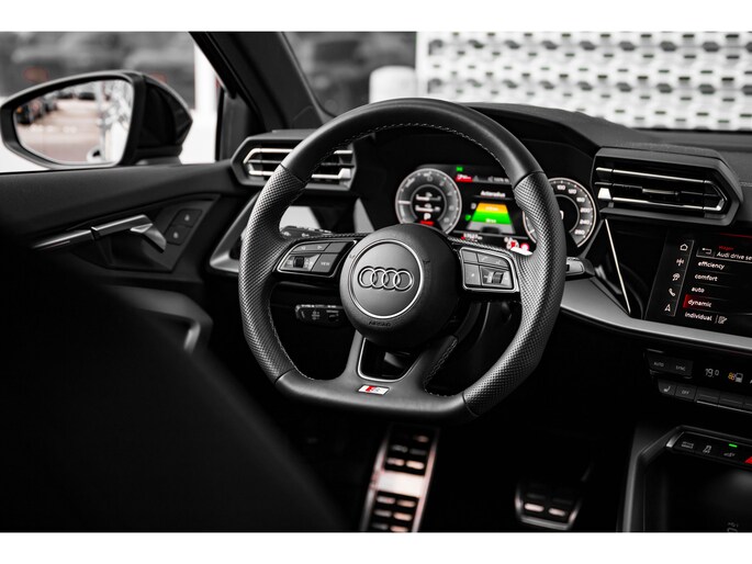 U rijdt gemakkelijk, comfortabel en zonder zorgen met deze Audi A3 Sportback. Deze auto is bijna nieuw, ondanks dat hij uit komt; hij heeft slechts 17524 kilometer afgelegd. De hybride motor van deze Audi A3 Sportback zorgt dat u opvallend veel minder brandstof verbruikt dankzij de ondersteuning van de elektromotor met z'n eigen accu. En die laadt u al rijdend bij. Slim en zuinig! Opvallend zijn de stoere sportstoelen, die zorgen voor een onwrikbare zit in de scherpe bochten. De kwaliteit van de matrix LED-verlichting geeft het gevoel dat u bij daglicht rijdt. In deze Audi profiteert u onder andere ook van: Audi instelbaar onderstel (drive select), elektrische handrem, dakspoiler en in delen neerklapbare achterbank. In deze auto wordt u elke rit opnieuw bijgestaan door een gebruiksvriendelijk Mmi plus navigatiesysteem, terwijl u luistert naar het glasheldere geluid van het Audi audiosysteem met DAB-radio. Climatronic 3 zones airconditioning verwarmt of koelt het interieur met een druk op de knop. Hoeveel ruimte u nog heeft bij het insteken? De parkeersensoren laten het weten! Da's gemakkelijk! De regensensor schakelt automatisch de ruitenwissers in bij regenval. De sensor van de keyless entry herkent u van dichtbij en ontgrendelt de auto alvast voor u. De uitrusting van deze auto is met automatisch dimmende binnenspiegel en isofix-aansluiting behoorlijk compleet. Het zal u verbazen hoe deze auto in staat is om voor u de omgeving en het verkeer om u heen in de gaten te houden. Tijdens de rit hebt u altijd een bijrijder, want de verkeersbord-detectie leest de borden langs de weg en projecteert ze voor u op het instrumentarium. Een noodstop maken doet u liever niet. Maar áls het nodig is, geeft de Brake Assist maximale ondersteuning. Laat het ons meteen weten als u interesse heeft in deze auto, dan kunnen we een afspraak maken om u de auto te demonstreren.