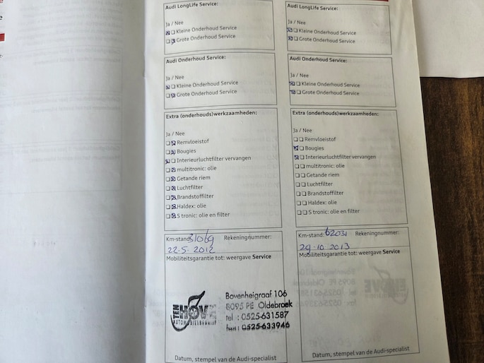 Onderhoudsboekjes: Aanwezig