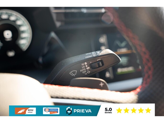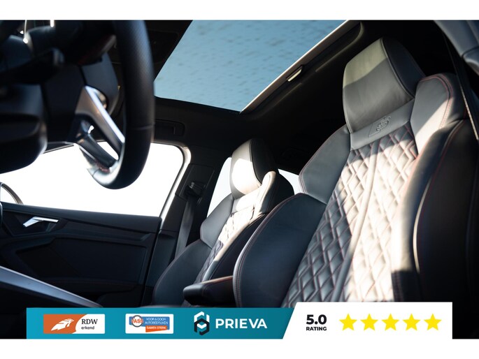 Binnenin wordt u ontvangen door de bekende RS-stoelen met uitgesproken sportieve vormgeving en perfecte zijdelingse steun. In combinatie met het volledig lederen interieur zorgen deze stoelen voor een premium en sportieve ambiance.