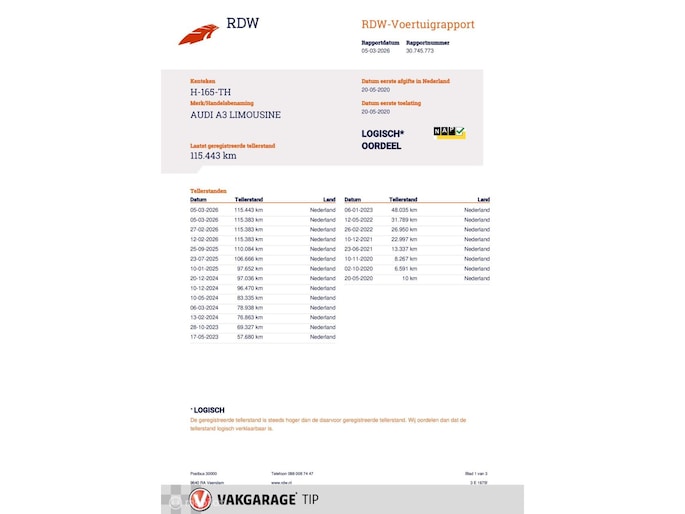 Kilometerstand gecontroleerd