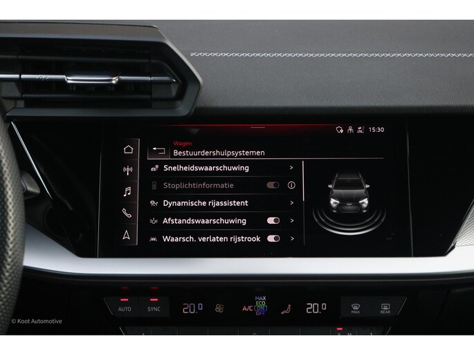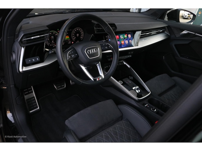 Ook op het gebied van infotainment is deze A3 zeer compleet uitgerust. Het Bang & Olufsen premium audiosysteem zorgt voor een krachtige en heldere geluidsbeleving. Daarnaast beschikt de auto over Audi Virtual Cockpit, MMI Navigation, Apple CarPlay en Android Auto, waardoor navigatie, media en smartphone-integratie intuïtief en overzichtelijk beschikbaar zijn. De digitale cockpit en het centrale MMI-scherm vormen samen een modern en overzichtelijk bedieningsconcept.