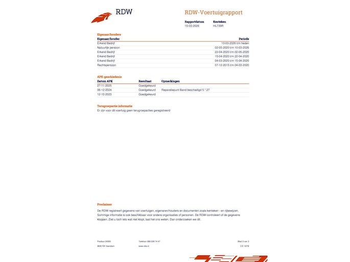 Kilometerstand gecontroleerd
