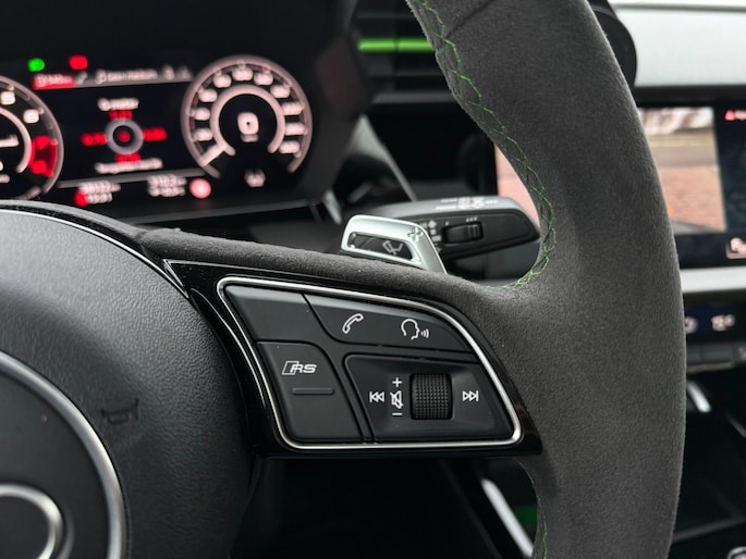 De RS3 rijdt en schakelt perfect en is zowel optisch als technisch in topconditie.