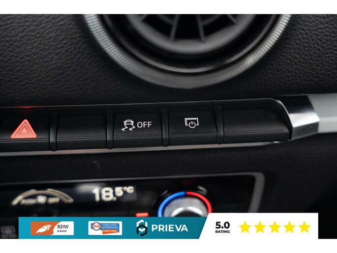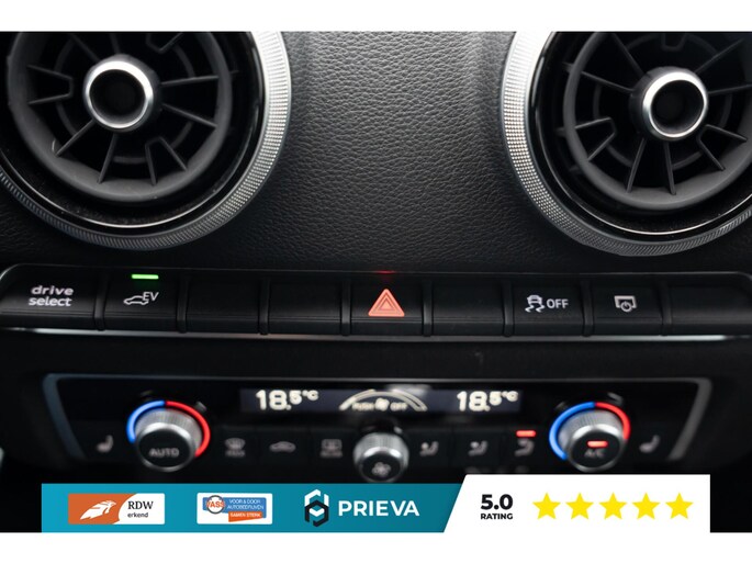 Ook qua uitstraling laat deze A3 niets te wensen over. Dankzij de S-Line uitvoering, 18 inch lichtmetalen velgen, sportonderstel en dakspoiler heeft de auto een duidelijke sportieve signatuur. De Matrix LED-koplampen bieden niet alleen een moderne uitstraling maar ook optimale verlichting in alle omstandigheden.