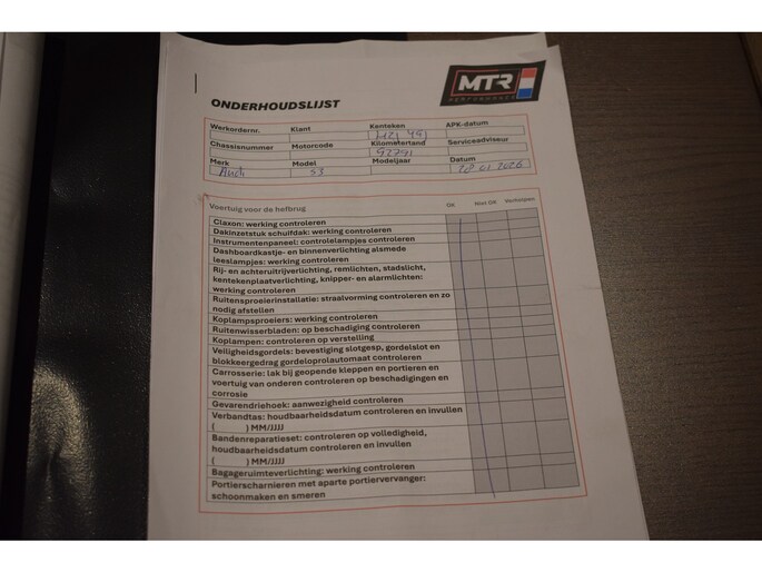 Onderhoudsboekjes: Aanwezig