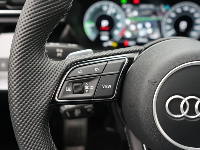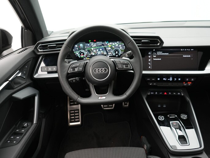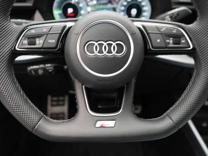 - Driespaaks lederen sportcontourstuur, afgevlakt aan de onderzijde, multifunctioneel plus, met stuurpaddels (2PK)