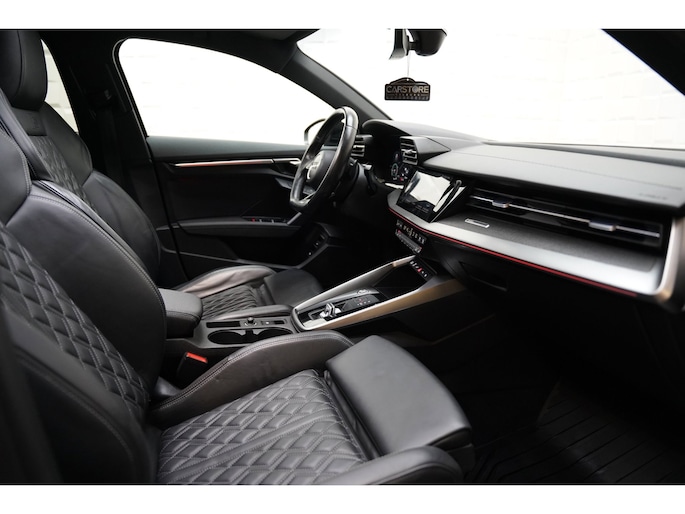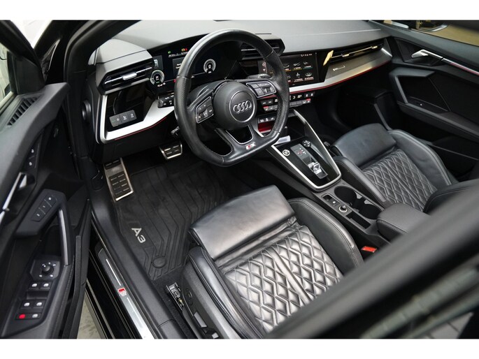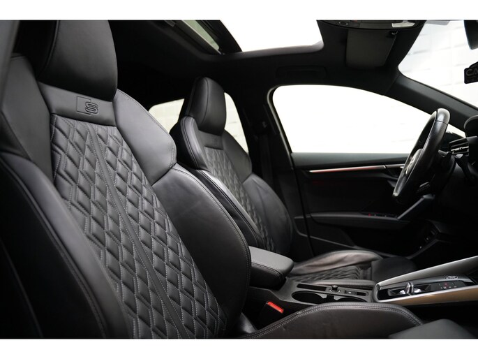Neem plaats in de cockpit, start de motor en voel het vermogen. Met deze sportieve Audi A3 Sportback hebt u altijd de controle. Grijze muizen zijn er al genoeg. Daarom heeft deze auto een lekker pittige S-Line styling. Een krachtige motor geeft deze auto zijn sportieve prestaties. De hoogwaardige, lederen bekleding benadrukt de kwaliteit van deze Audi. Zit u goed? De stoelen zijn eenvoudig instelbaar dankzij de elektrische bediening met geheugen. Het interieur lijkt groter en ruimtelijker dankzij het elektrisch bedienbare glazen panoramadak. Met een druk op de knop gaat de elektrische achterklep open. Met matrix LED-verlichting rijdt u eigenlijk altijd met groot licht, dus maximaal zicht. Toch is verblinden er niet bij, want het systeem regelt de verlichting zo dat tegenliggers er geen last van hebben. In deze auto profiteert u onder andere ook van: 18 inch lichtmetalen velgen, dakspoiler, extra getint glas, in delen neerklapbare achterbank, LED-achterlichten en verstelbare lendensteunen.