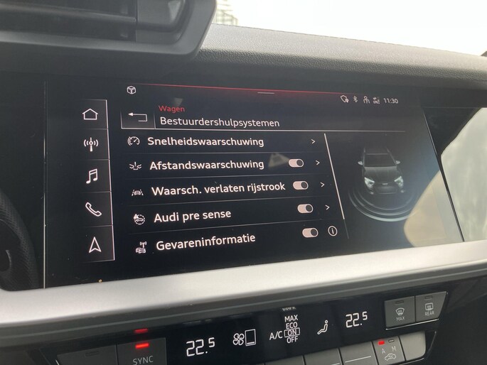 De nieuwste veiligheidssystemen komen in deze Audi A3 Sportback samen. Bij de veiligheidssystemen van deze Audi hoort ook de verkeersbord-detectie. Die leest tijdens het rijden als het ware met u mee en attendeert u op de significante verkeersborden langs en boven de weg. Keep your lane? Het Lane-keeping systeem zorgt er automatisch voor. Bij een noodstop gebeurt er heel veel tegelijk: gas los, rempedaal in, kijken, sturen. Dan is het een veilig gevoel dat de Brake Assist uw remactie tot het maximum oppept.