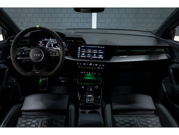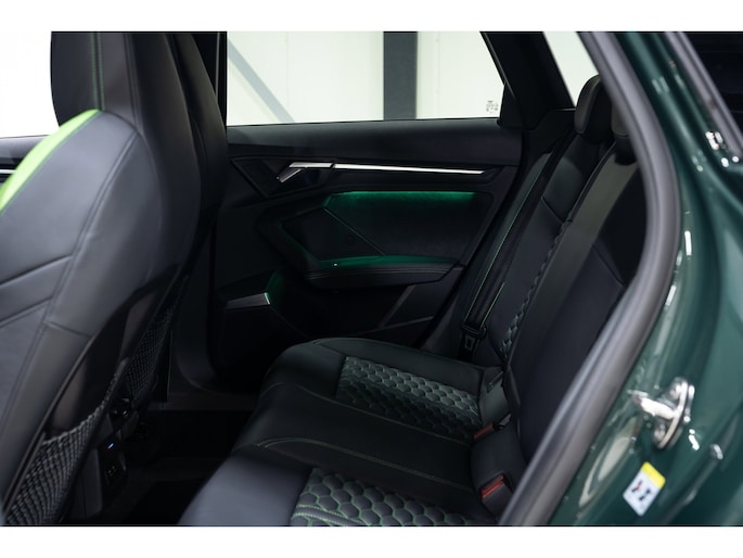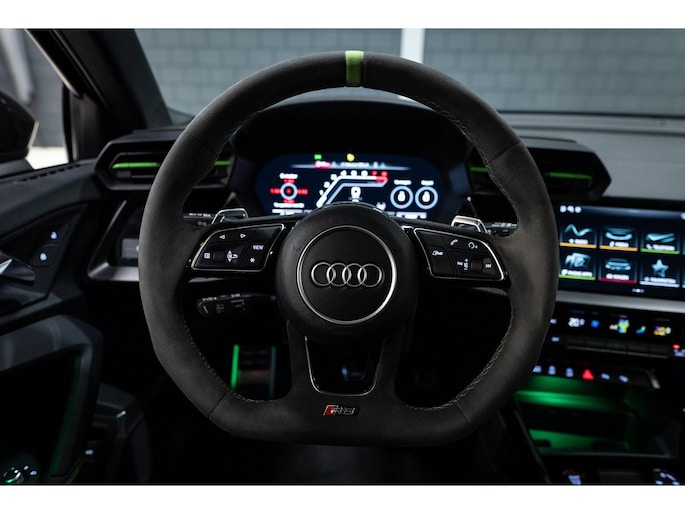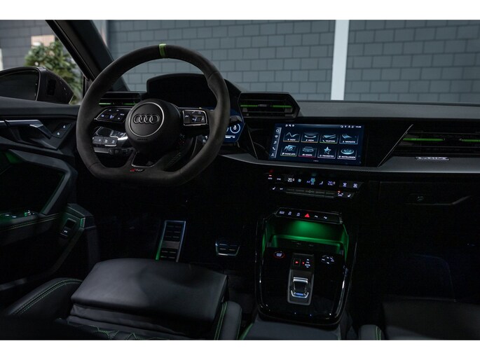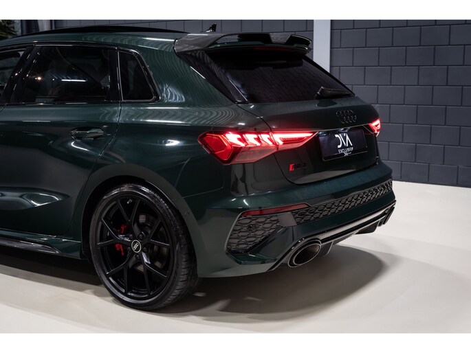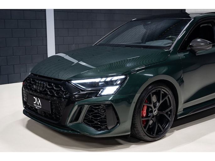 Deze Perfecte Audi RS3 is voorzien van alle opties. In de kleur Goodwood green icm een Ceramic Coating blijft de kleur prachtig. Daarbij is de auto verlaagd met COBRA Suspension en hebben we een Sportcatalysator gemonteerd voor het beste geluid.