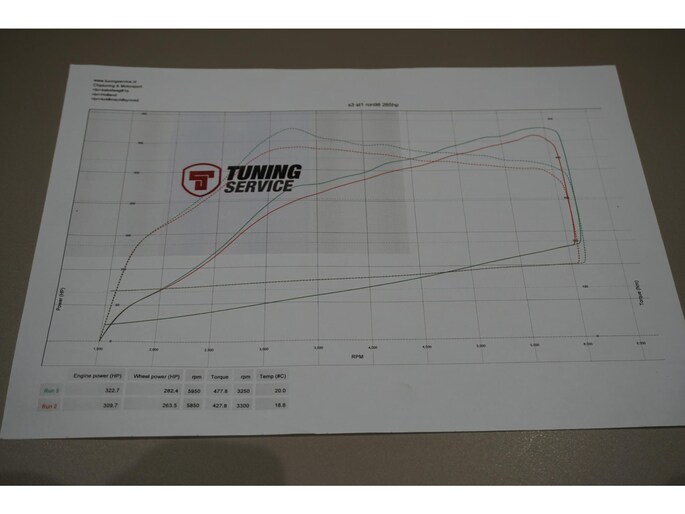 De auto is voorzien van stage 1 software door de bekende firma Tuning Service Huizen, waar deze een motor & bak afstelling heeft gehad met als resultaat 322.7 pk en 477.8 nm koppel!