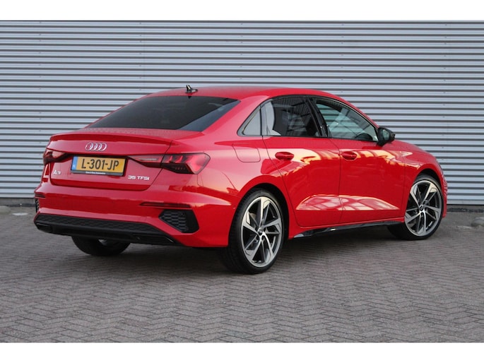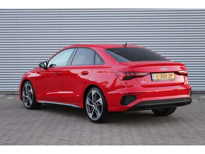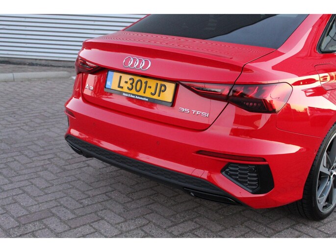 Deze sportieve Audi A3 Limousine 35 TFSI is goed onderhouden en in zeer nette staat. Deze 150pk sterke Audi is voorzien van unieke kleur Tango Red Metallic, een S-Line, black optiek zwarte acceten, privacy glass, 19inch velgen, matrix led koplampen, achteruitrijcamera, virtual cockpit, headup display, Apple/Android Carpay, climat control, adaptieve cruise control, sportstoelen, privacy glass, zwarte hemelbekleding, dynamische knipperlichten, navigatiesysteem, lane assist en bluetooth.