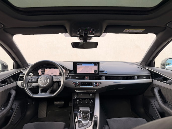 Autohuis Ter Laare biedt deze mooie Audi A4 Allroad 45 TFSI S-Line, met automatische S-Tronic transmissie, aan in de kleur Mythosschwarz Metallic! Deze auto is voorzien van opties waaronder Quattro vierwielaandrijving, glazen panoramisch schuif-/kanteldak, 360 graden parkeercamera (met bochtassistentie), multimediasysteem (o.a. DAB+, Apple Carplay/Android Auto, navigatie, Bluetooth etc.), verbredingslijsten in carrosseriekleur, virtual cockpit, RGB sfeerverlichting (ook kleuren afzonderlijk in te stellen), keyless go/entry, elektrische achterklep, Bang & Olufsen premium geluidssysteem, standkachel (op afstand bedienbaar), Drive Select adaptief dempingsysteem, half leder/alcantara interieur, elektrisch verstelbaar, memory & verwarmbare voorstoelen, zwarte dakhemel, privacy glass, matrix LED koplampen & achterlichten, climate control, adaptive cruise control i.c.m. lane assist, 3x isofix, inductielader voor uw Smartphone, koplampsproeiers, armsteun voor en achter, bekerhouders, zonnescherm in achterdeuren, elektrisch inklapbare zijspiegels met dodehoekherkenning (Blind Spot) en een afgevlakt multifunctioneel lederen stuurwiel met F1-flippers.
