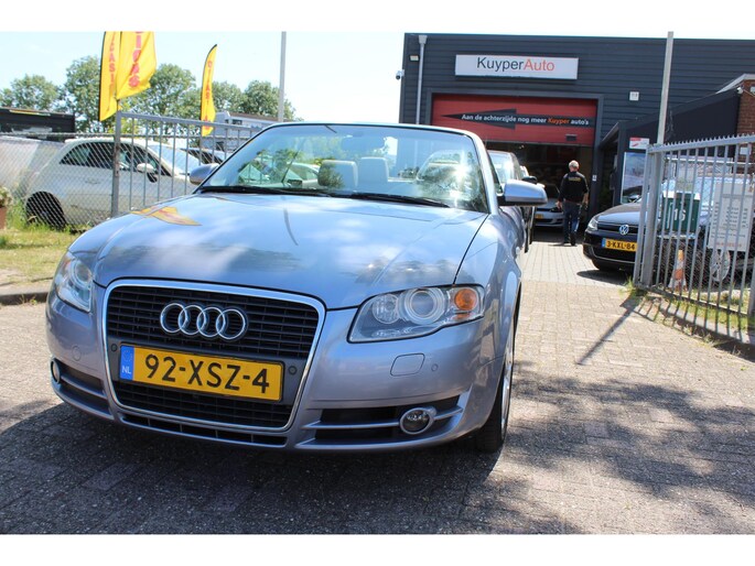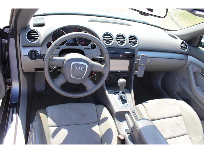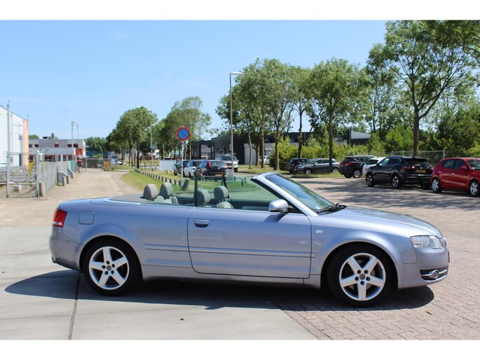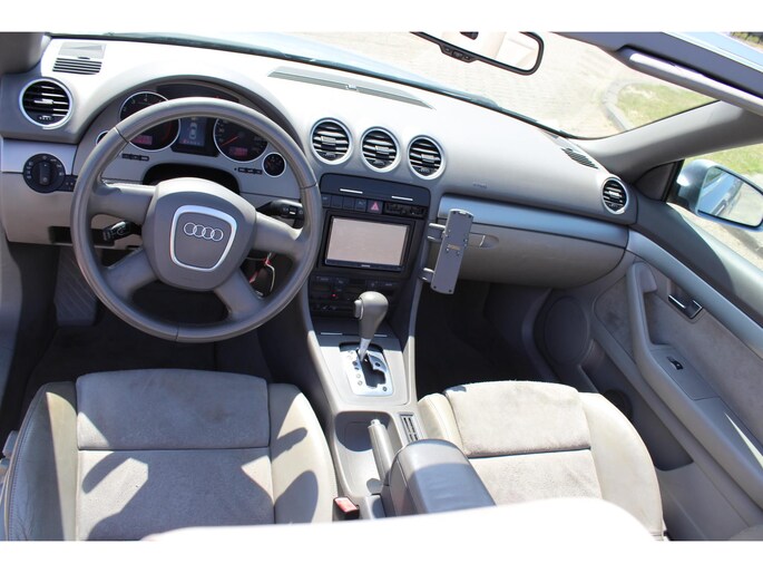 Een auto als de Audi A4 Cabriolet biedt een dynamiek en comfort die typerend zijn voor de producten van de Duitse autofabrikanten. Met een viercilinder motor en een automatische transmissie beschikt deze Audi over uitstekende prestaties. Stijl en comfort krijg je erbij in de vorm van een fraai lederen interieur. Kiezen tussen open en dicht rijden kan met een druk op de knop dankzij de elektrisch bediende cabriokap. Tot de voorzieningen van deze auto behoren elektrisch verstelbare voorstoelen en 16 inch lichtmetalen velgen.
