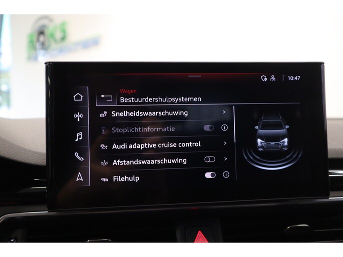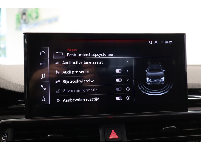 De nieuwste veiligheidssystemen komen in deze Audi A4 Avant samen. Dat de auto steeds meer taken van de bestuurder overneemt, merkt u bijvoorbeeld aan het systeem voor verkeersbord-detectie in deze Audi. Voorzien van het Lane-keeping systeem. Ofwel: blijf automatisch in je baan. Ook als uw aandacht even verslapt, blijft de forward collision warning bij de wekker. Dreigt er een botsing met een voor- of tegenligger, dan waarschuwt het systeem direct. Bovenop deze veiligheidsfeatures heeft deze Audi bovendien dodehoekdetectie, hill hold functie, brake assist en bandenspanningcontrolesysteem.