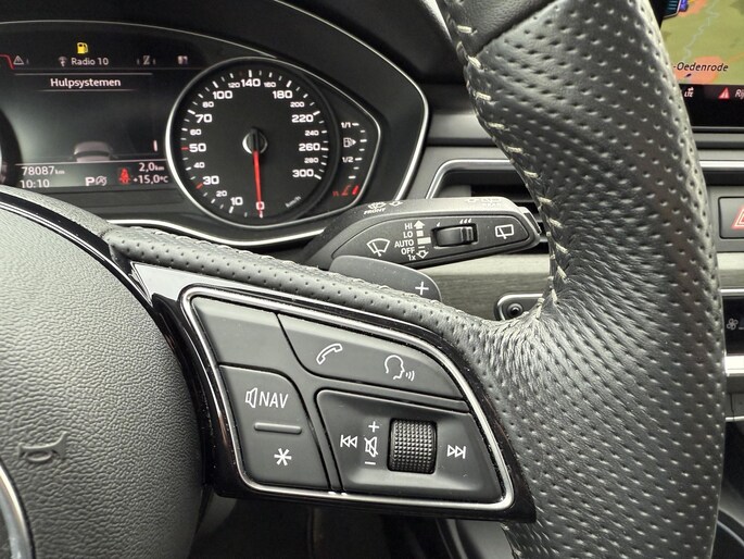 De radio harder of zachter zetten of iemand uit uw contactenlijst bellen. Dankzij de spraakbediening doet u dit allemaal met uw stem. Deze Audi A4 Avant is 'connected'. Belangrijke functies worden permanent gemeten en zijn uit te lezen via een speciale app, ook op afstand. Het full map navigatiesysteem zorgt ervoor dat u snel en ontspannen op uw bestemming aankomt. Tot de standaard uitrusting van deze auto hoort ook electronic climate control. Met de DAB-ontvanger heeft u keuze uit talloze digitale radiozenders met de allerhoogste geluidskwaliteit. De uitrusting van deze Audi is met sportstuur met schakelpaddels, parkeersensoren achter, cruise control, keyless entry, centrale deurvergrendeling met afstandsbediening en boordcomputer behoorlijk compleet.