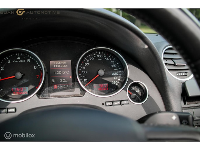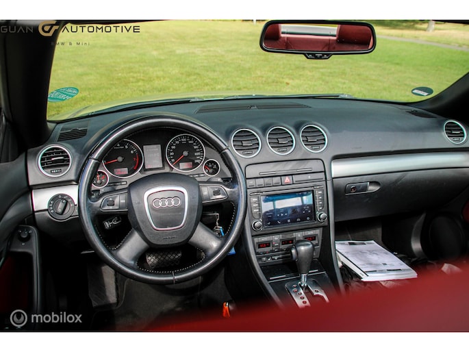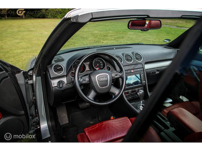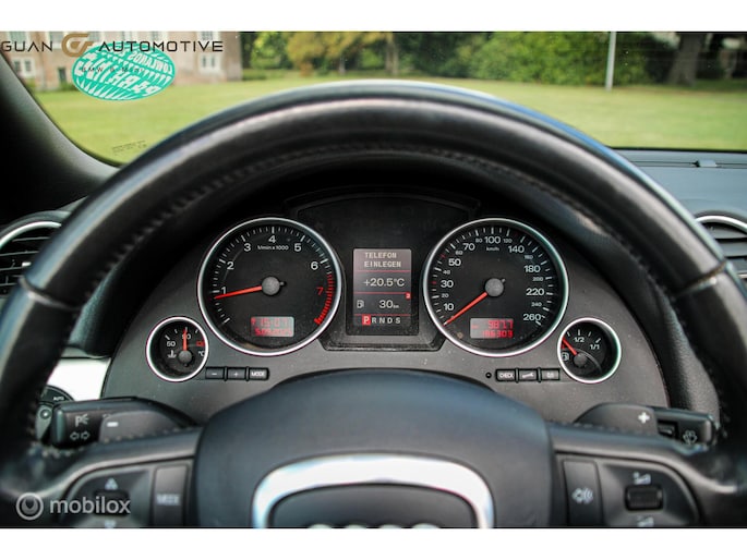 Het audio-installatiesysteem is handig te bedienen vanaf het stuurwiel, wat bijdraagt aan een veilige autorit. Of het buiten nu warm is of koud, dankzij automatische airconditioning is het binnen altijd behaaglijk. Een plekje vinden in de binnenstad is één, inparkeren is twee. Voor dat laatste heeft deze Audi A4 Cabriolet prima parkeersensoren die u een handje helpen. De juiste ruitenwisserfrequentie gaat automatisch van motregen tot noodweer, de regensensor reageert direct. Op een rustige weg komt de cruise control helemaal tot z'n recht. En deze auto heeft ook buitentemperatuurmeter, lederen stuur, centrale deurvergrendeling met afstandsbediening en boordcomputer als standaard uitrusting.