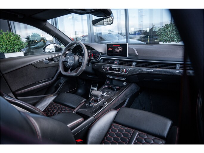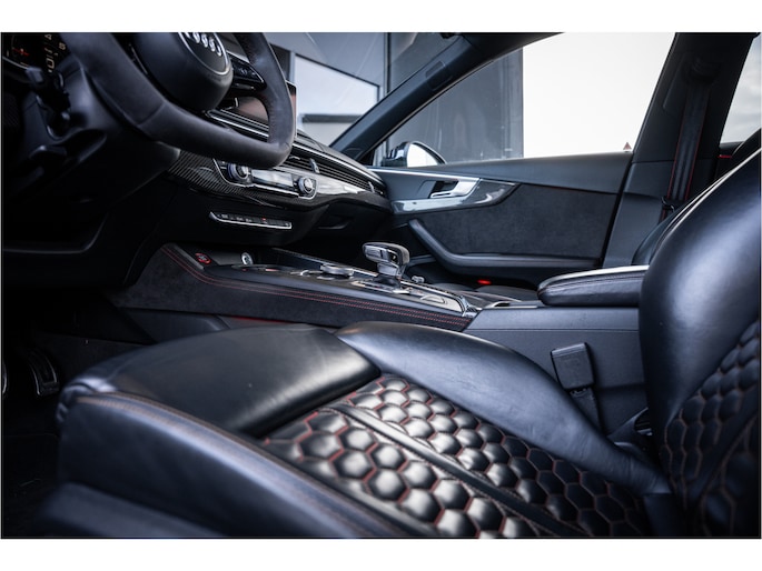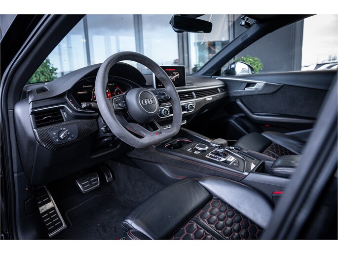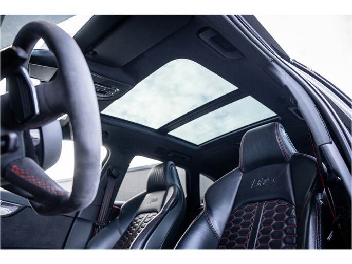 Binnenin is het interieur volledig afgestemd op luxe en sportiviteit. Hoogwaardige materialen, sportstoelen, alcantara- en carbonaccenten en Audi’s moderne digitale cockpit zorgen voor een sfeer van kwaliteit en performance. Alles voelt robuust, premium en doordacht aan – precies wat je verwacht van een RS-model.