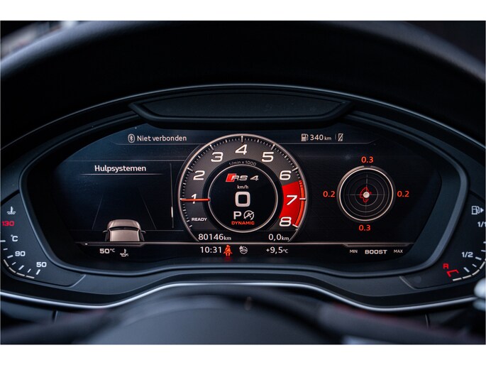 De 2.9-liter V6 biturbo-motor levert directe en indrukwekkende kracht, met een respons die scherp en explosief aanvoelt. Dankzij het quattro-vierwielaandrijvingssysteem wordt dit vermogen uitzonderlijk effectief op de weg overgebracht. Of je nu accelereert, een bocht instuurt of rijdt in uitdagende omstandigheden, de RS4 voelt altijd vastberaden, stabiel en messcherp aan. Het is een auto waar rijplezier en vertrouwen hand in hand gaan.