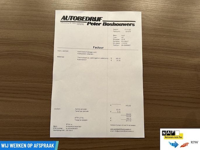 Op ons Marktplaats account vind u altijd een zeer complete fotoreportage, zet wij ook altijd de eventuele beschadigingen op de foto en als er onderhouds boeken zijn dan fotograferen wij die ook compleet.