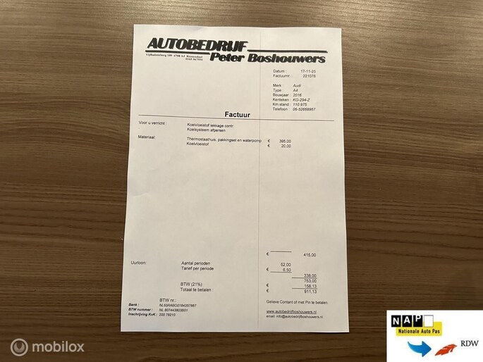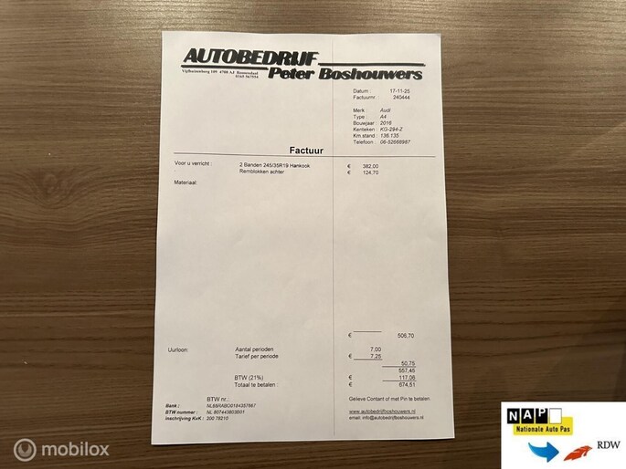 | Wegenbelasting/3mnd | € 226 - € 247 |