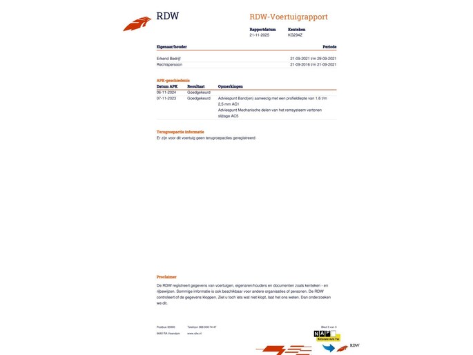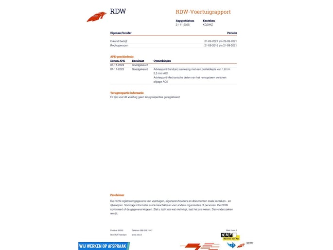 Kilometerstand gecontroleerd