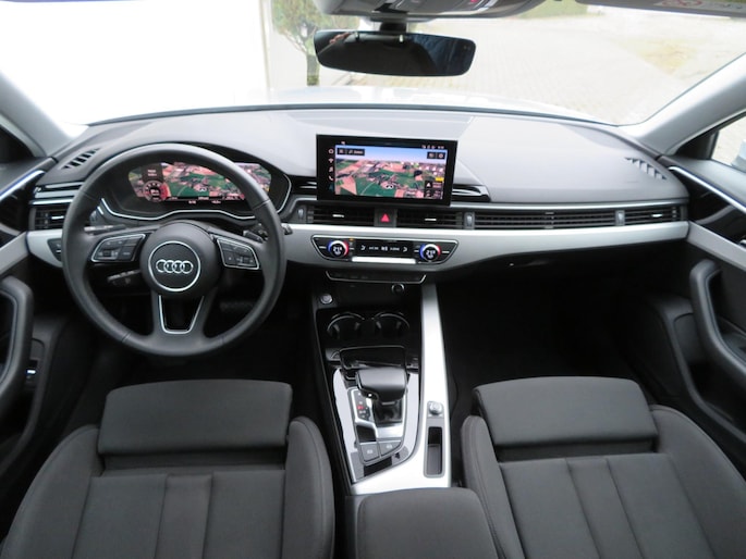De vitrule cokpit is een perfecte bijrijder. Alles benodigde informatie waaronder een grote kaart van het navigatiesysteem is permanent zichtbaar of opvraagbaar. Voor de veiligheid op de weg is het goed dat u uw ogen op de weg kunt houden en uw handen aan het stuur. Want het audiosysteem, met DAB-ontvangst, en het full map navigatiesysteem bedient u vanaf het stuurwiel en met spraakbediening. Met de electronic climate control selecteert u de gewenste temperatuur. Het systeem doet de rest. U kunt bij het inparkeren natuurlijk niet aan alle kanten ogen hebben. Daarom is deze Audi A4 Avant voorzien van parkeersensoren achter. De Audi is standaard voorzien van: sportstuur met schakelpaddels, cruise control, automatisch dimmende binnenspiegel, centrale deurvergrendeling met afstandsbediening en boordcomputer. Natuurlijk is deze Audi ook voorzien van een draadloos Apple Carplay of Android auto aansluiting. Ook zijn een normale USB aansluiting en een USB-C aansluiting aanwezig.