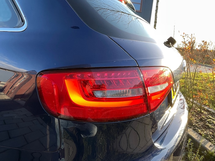 In het donker zorgt de xenonverlichting voor een goed zicht op de weg. Ook 18 inch lichtmetalen velgen, sportonderstel, halflederen bekleding, dakspoiler, neerklapbare achterbank en verstelbare lendensteunen horen tot de voorzieningen op deze auto.