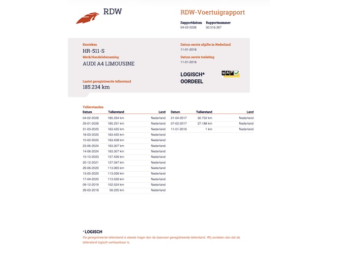 Kilometerstand gecontroleerd