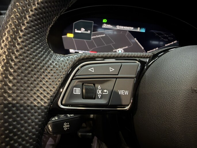 Via het digitale dashboard bent u permanent op de hoogte van alle informatie die u nodig heeft voor een veilige rit. Spraaksturing is onderdeel van de uitrusting van deze auto. Met uw stem kunt u de belangrijkste voertuigfuncties bedienen. In het zeldzame geval van een storing weet u nog eerder dan de monteur wat er mankeert. Uw smartphone met remote services geeft direct inzicht. Topprestaties in muziek en geluid? Dat is bijgeleverd in de vorm van het high performance audiosysteem! Nooit meer de weg kwijt: daarvoor zorgt het onboard MMI navigatiesysteem. En dan is deze auto ook nog eens voorzien van WIFI-hotspot, electronic climate control, schakelpaddles aan het stuur, digitale radio, parkeersensoren achter en cruise control.